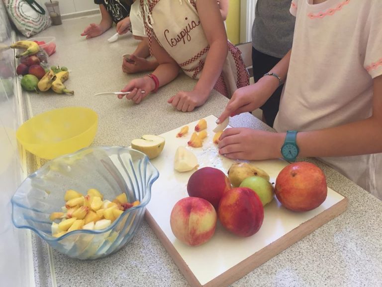 Τα παιδιά του Μοντεσσοριανού Summer Camp και ΚΔΑΠ του σχολείου μας σήκωσαν τα μανίκια τους, έβαλαν τις ποδιές τους και άρπαξαν τα εργαλεία τους έτσι ώστε να φτιάξουν τις δικές τους καλοκαιρινές φρουτοσαλάτες. Έπλυναν προσεκτικά κάθε φρούτο , ξεφλούδισαν και έκοψαν τα φρούτα σε μικρά κομμάτια , τα τοποθέτησαν σε μεγάλα μπολ και αφού καθάρισαν την κουζίνα τους κάθισαν όλοι μαζί παρέα να απολαύσουν τη δημιουργία τους. Η φρουτοσαλάτα αποτέλεσε αφορμή για να ξεκινήσει μια μεγάλη κουβέντα με τα θρεπτικά συστατικά που περιέχει κάθε φρούτο αλλά και σε τι μας βοηθάει το καθένα από αυτά. Πάντα οι συνταγές στη κουζίνα μπορούν να γίνουν διασκεδαστικό παιχνίδι μάθησης και δημιουργίας.