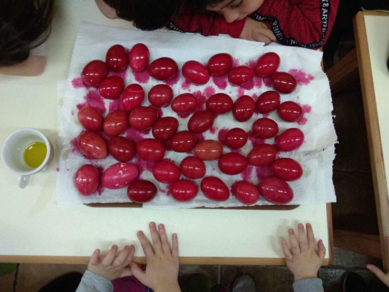 Μικροί και μεγάλοι συμμετείχαμε στην όμορφη αυτη διαδικασία βάφοντας τα δικά μας Πασχαλινά αυγά.